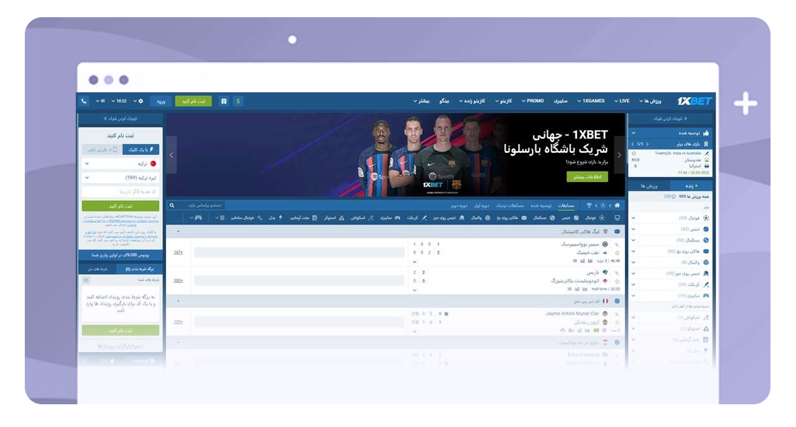 سریعترین و سادهترین روش ثبتنام در سایت 1xBet، گزینه «ثبتنام با یک کلیک» است. در این روش تنها با وارد کردن شماره تلفن یا ایمیل، یک حساب کاربری موقت برای شما ساخته میشود و میتوانید بلافاصله وارد سایت شوید. تکمیل اطلاعات شخصی و تعیین رمز عبور در مراحل بعدی انجام میگیرد و این روش برای کاربرانی که به دنبال ورود سریع هستند بسیار مناسب است.